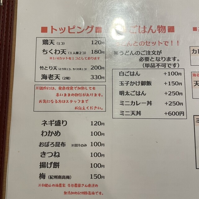 うどんは大盛り、それに「鶏天」2つトッピング&「白ごはん」(少なめ)もお願いしましたよ。