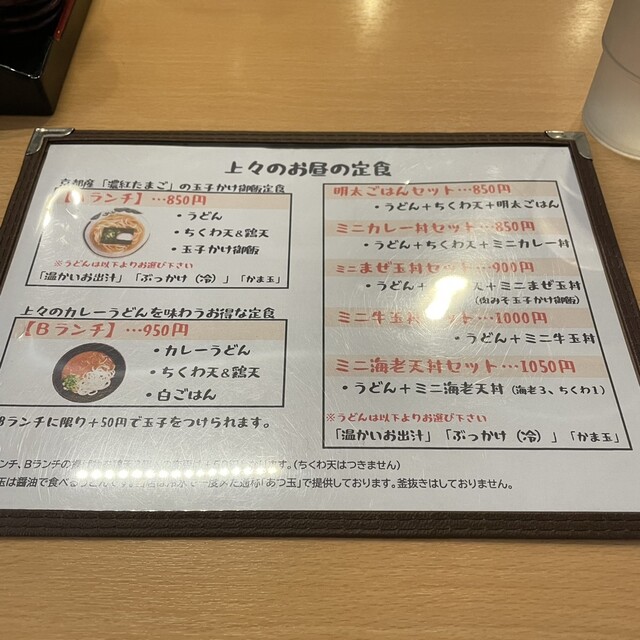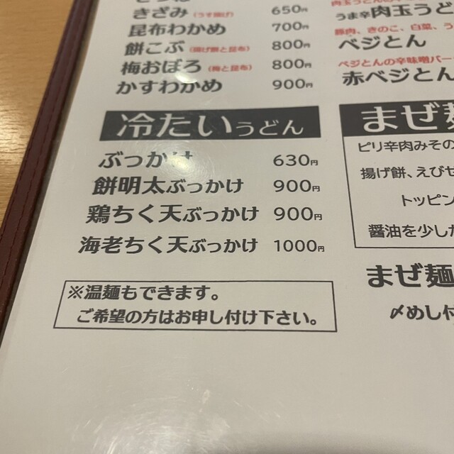 ちなみに、「うどん」は、「温かいお出汁」「ぶっかけ(冷)」「かま玉」から選べます。