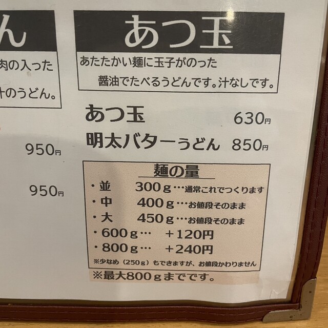 「うどん」は、「温かいお出汁」「ぶっかけ(冷)」「かま玉」から選べます。ちなみに「かま玉」は、冷水で一度〆た通称「あつ玉」なのだそうですよ。