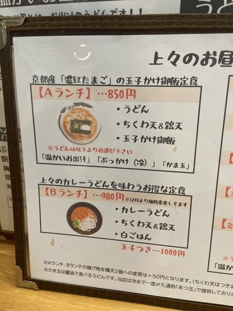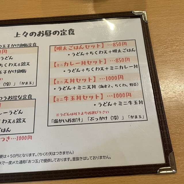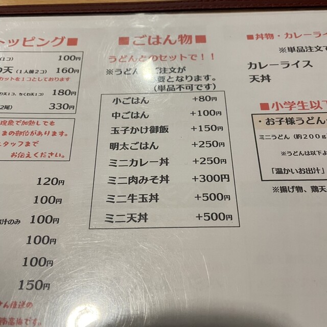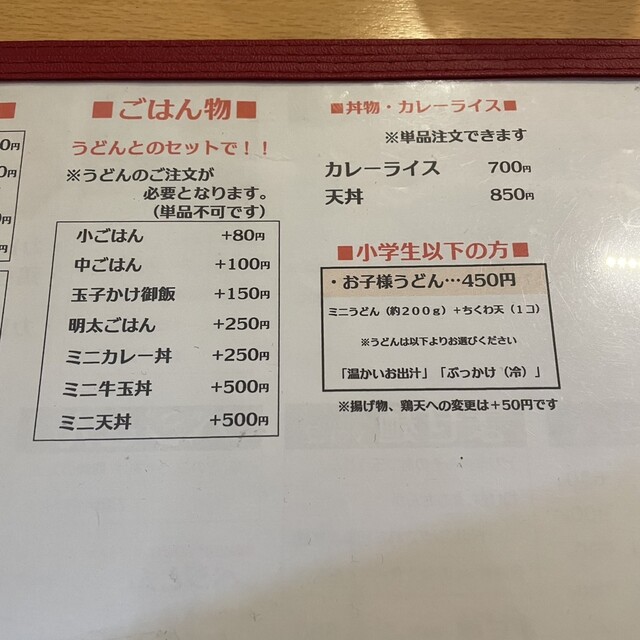 お店に着いて「鶏天カレーうどん」を頼もうとしたのですが、メニューに「鶏天カレーうどん」の文字がなかったんです。