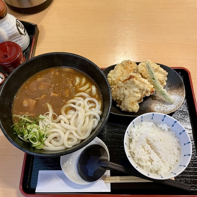 うどん上々のカレーうどん&鶏天、大好きだなぁ〜