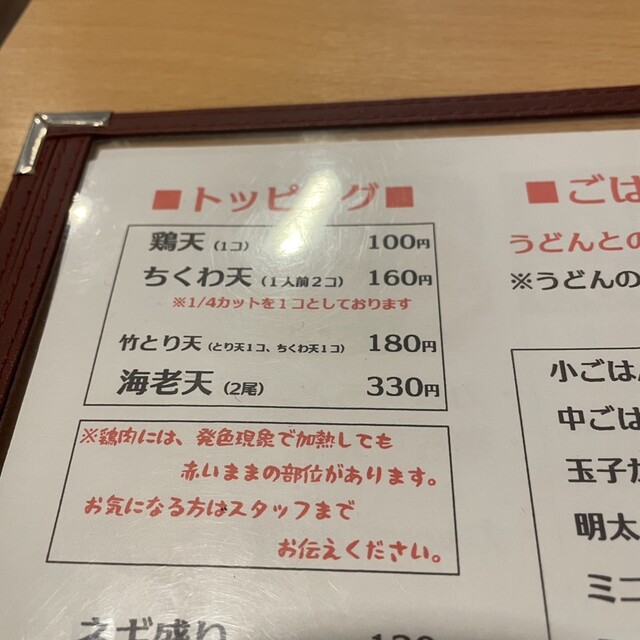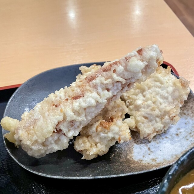 メニューから「鶏天カレーうどん」と言う名称は、なくなったのですが。「カレーうどん」に「鶏天3つ」トッピング、と注文すれば良いので、全く問題ないですね(^^)v