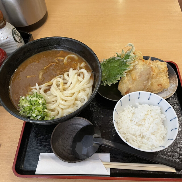 東成区玉津にあるお気に入りのうどん屋さん「うどん上々」で、「鶏天カレーうどん」を頂きました。うどんは中盛り、小ご飯もお願いしました。
