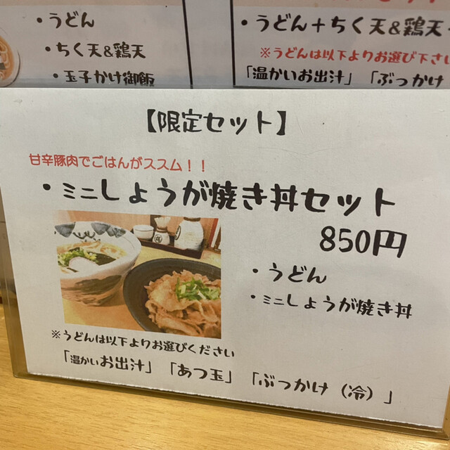 うどん上々のInstagram @udon_joujou にアップされてた「ミニ生姜焼き丼セット」を見て、無性にこれが食べたくなってしまったんです。