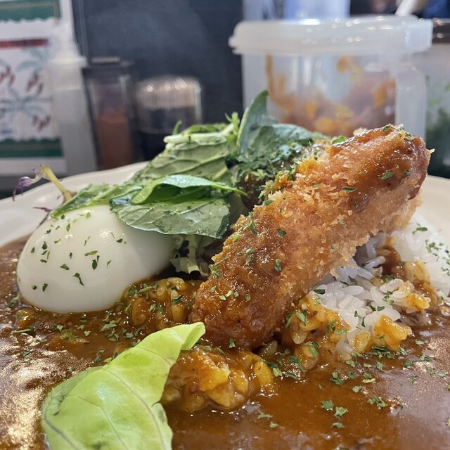天六にある、お気に入りのカレー屋さん「カルダモン.」で、限定カレーの「牡蠣フライカレー」を頂きました。