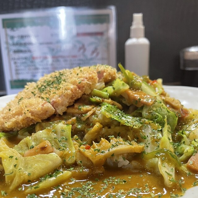 春キャベツのシャキシャキな食感とトリッパーの食感がなんとも小気味好いカレーなんですよね。ココナッツミルクとベーコンの組み合わせも絶妙だと思いますわ!