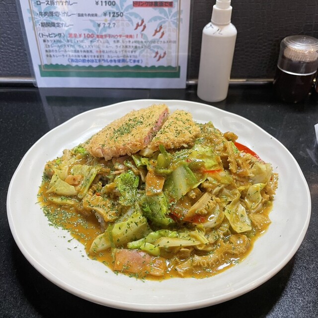 カルダモンの今回の限定カレーは、人気の限定カレー「セイロン風ベジタブルカレー〈シマ腸添え〉」でした。
