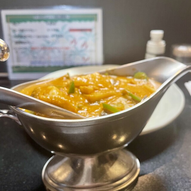 このカレーは、ココナッツミルクを使って具材を煮込んでるのだそうです。青唐辛子を使った辛口のカレーなんですが、ココナッツミルク効果なのか、結構、マイルドな辛さに感じるんですよね。