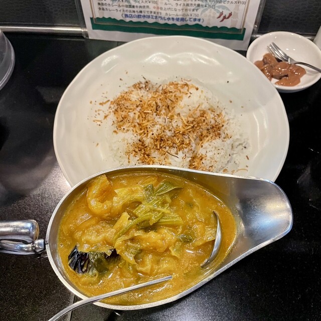 天六にある、お気に入りほカレー屋さん「カルダモン.」で、限定カレーの「セイロン風ベジタブルカレー」を頂きました。イカの塩辛付きです。