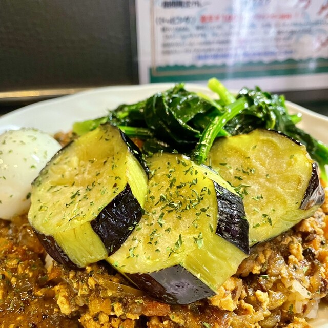 サラダ仕立ての辛口鶏キーマカレー、めっちゃ旨かった〜〜〜