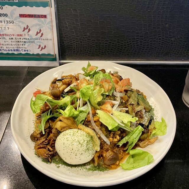 秋野菜のサラダ仕立ての辛口鶏キーマカレー、めっちゃ旨かった〜〜〜