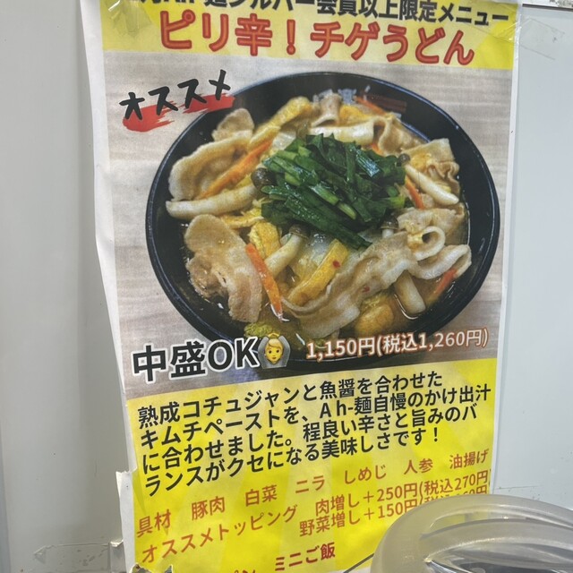AH麺の1月の裏メニュー「ピリ辛!チゲうどん」ですが、