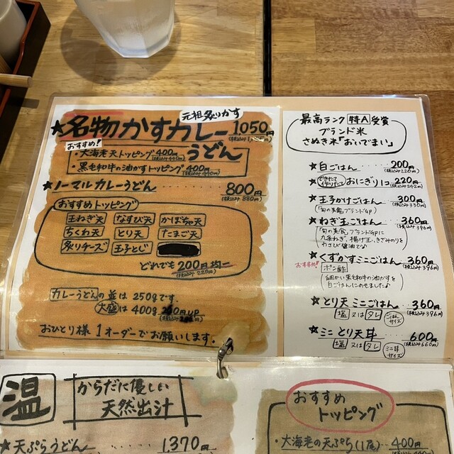 この日、他のお客さんは、名物かすカレーうどんに大海老天トッピングしてる人が多かったんですよね。