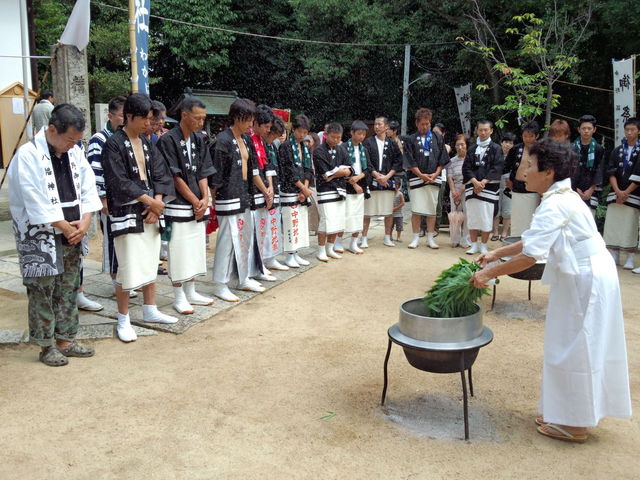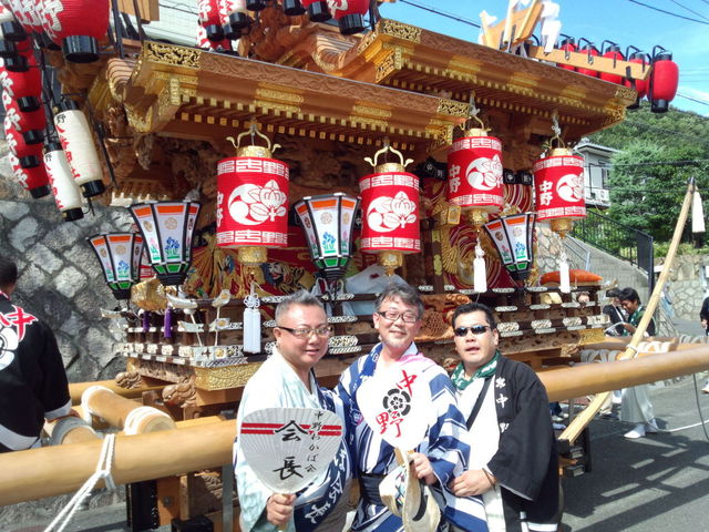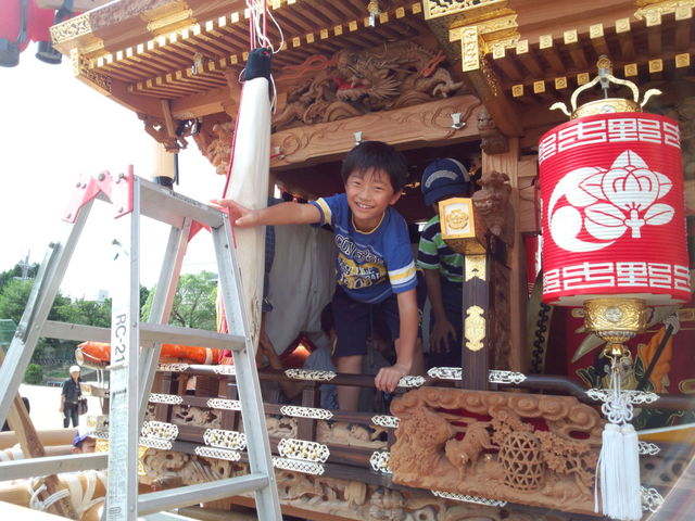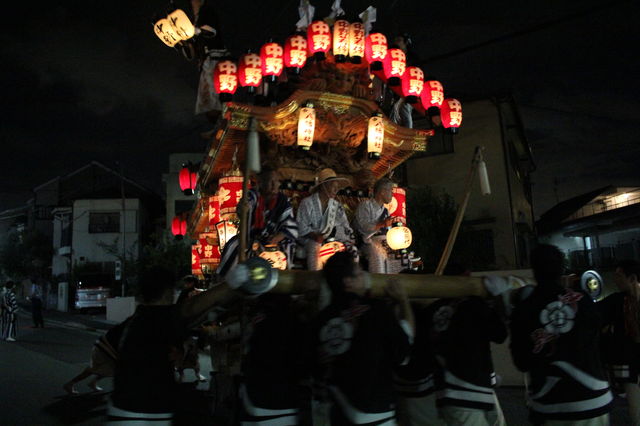 午前中は神社で神事が催行され、午後からは地車(だんじり)の曳行