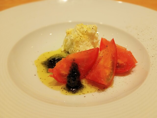 前菜 清水牧場のフレッシュチーズと野菜のマリネ