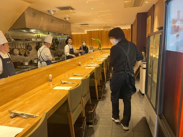 オープンキッチンで目の前で繰り広げられる、調理の一部始終