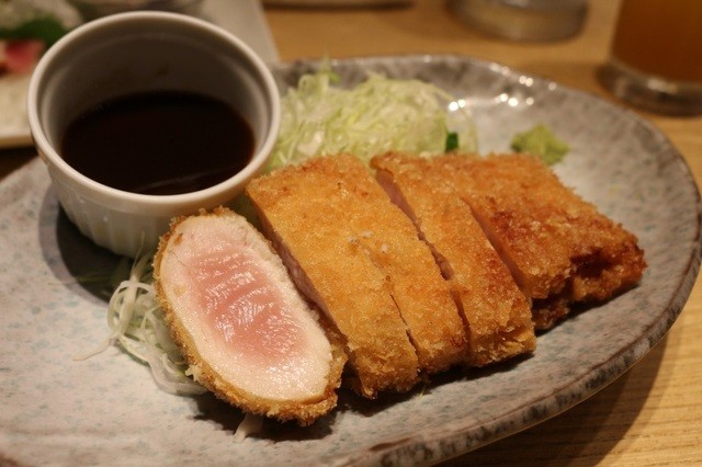 ブログネタ:29日に肉食べる?参加中29日は肉の日~最近、世の中は、「肉フェス」や「肉バル」などができて肉を外で食べよう~と掲げていますね~。我が家も渋谷まで行く機会があり夕飯を肉の日にちなんで肉をかぶりついてきました~その記事はこちらです~渋谷っ子居酒屋 とととりとん渋谷とととりとん~とが多くてどんな意味があるのかしらとと(魚)とり(鶏)とん(豚)^^お店に入ると掘りごたつ式になっている席に通されました^^すでにお客様がいたのですがお客様同士を離して座らせてくれる配慮も素敵^^それに座ってしまえば真後ろに或る衝立が頭の部分までの高さがあるのであちらからもこちらからもお客の視線など感じず^^いいアイデアなお店です。座るなり、「冷たいおしぼりと温かいおしぼりどちらが良いですか?」なんて聞かれて選択できるんだ^^と、嬉しいサービス。頼んだ飲み物~パイナップルオレンジクーラー(ノンアンコール)はパイナップルとオレンジとトニックウォーターの組み合わせでさっぱりとしています^^420円左が当店初来店限定メニューとして出されたバカ旨きゅうり~当店1番人気なんだとかでざくっとした歯ごたえが素敵な一品。右はゴーヤともやしの組み合わせのお浸し風のお通し。とととりとん一押しメニューはこちら~焼き鳥串 ももと砂肝です。各97円とは安すぎる~それでね~鶏肉はふわっと柔らかく、炭のいい感じで焼かれて最高に美味しかったです。きっとお肉が新鮮なんだろうねって話してました。生臭くなくって固くなくって~鶏の美味しい味って重要ですよね。安いし、美味しいし何度でもお替りしちゃいたくなる定番メニューからのご紹介。当店先着5名様までの鶏胸肉のレアかつ~626円まあ、鶏胸だからって~なめんなよ~って聞こえてきそうな勢いでもこれがバカにできない美味しさでとっても歯ごたえがプリップリで中は半生。生で食べられるくらい新鮮なのね~薄くついた衣がさくさくして特製の塩を振ってそれだけでたべるのが通な食べ方らしいよ(‾▽+‾*)美味しいものはわさびや塩と言ったものや薬味で食べるのも美味しいよね。これは是非訪れたら食べてほしいなあ~。何やら変わった風な食べ方で茹で豚タン~518円相当煮込まれた豚のタン部分をとっても柔らかく煮込んであるよ~それもほろほろっとして時には弾力もあり豆板醤と白髪ねぎ合わせていただく~ビールのつまみに最適っ。雰囲気もお食事もどこどなく沖縄を感じる~店員さんの格好などからして^^お次は贅沢に鶏の一枚から揚げ~578円どれもお財布に優しい^^ありがたい~渋谷っ子にとって美味しいものをたくさん食べたいよね^^右見ても左見ても女子が多いのはリピーターさんだろうかカラット揚がったチキンは今見てもジューシーで香ばしかったよおお^^今時間このような写真見ちゃうと目の毒だね><争奪戦開始ってくらい~早々なくなってしまった鴨のたたき 626円甘口醤油で食べる歯ごたえがたまらな~^^^い鴨がピンク色してキレイ~玉ねぎと鴨と醤油でたまらぬ美味しさ。ハムの一歩手前なお味。名物と聞いたらすぐさま頼みたくなるっ名物さつま揚げ 青のりと紅生姜入り~ 390円外がカリッと焼けていて中はふわっと青のりと紅生姜のコンビがお好み焼き風な味で壁には「野菜はつまみで取れ!」まるで渋谷のお母さん的な言葉が書かれていましたたしかに栄養価の高いものばかりでしたわ~サメ軟骨(梅水晶)~421円サメと梅肉をうまく合わせてこりっとした歯ごたえでさっぱりとした1品。口直しやご飯の相性も良さそうです。最後のご飯ものは~わがままごはん鮪編 518円肉でも魚でもベースを決めてほぼお任せで作ってもらう賄い丼のようなものです。ちなみにみなさんのフォトギャラリーを見させていただくと炒飯になっているものや海鮮的なものなどさまざま。お客さんのご要望になるべく応えてくれ、トップには鮪の剥き身、まぐろのぶつ切りやかつおなどご飯茶碗1杯分くらいですので一人分かなあ~ネタが新鮮だしご飯もふわっとして、いらないいらないいうとお隣さんに結果半分持ってかれた~それだけおいしかったというわけです最後のシメはデザートで^^おいしいバニラアイス 313円はちみつクリームチーズプリン~454円柔らかいクリームチーズの味がするプリンにはちみつとろーんとかけてあるのでほんのり甘くって美味しいかった。とととりとん渋谷は渋谷マークシティーの真ん前だし駅も近いし、便利な場所にありました。こういったサービスやお誕生日にケーキのサービスがあるようよ^^