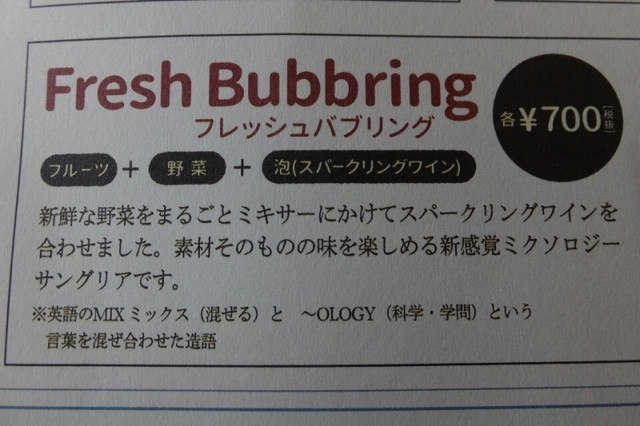 目の前でスパークリングワインを足してミキサーにかかった野菜たちを割って飲みます!