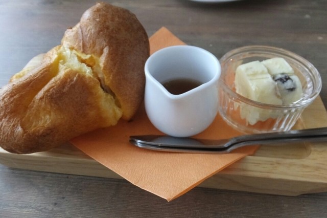 ポップオーバーと呼ばれるパンなんだけど、シューの皮とクロワッサンの生地を合わせて作ったような、すごく食べごたえある美味しいパン。