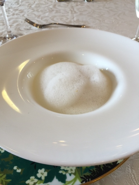 まずはこちら~魚介のタルターレ レモンフレーバーの泡