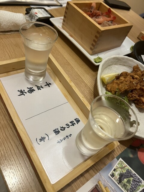 とはいえ外せない、エビの舛盛からスタート。いつもと同じだ…(笑)。宴会だと飲み物でなかなかわがまま言えませんが今日は国稀純米三種セットを試してみました。ふだん日本酒をあまり飲まない私ですがこのお店は増毛産の素材にこだわったお店。国稀酒造のお酒は見逃せません。そのほか、天ぷら盛り、コーンのかき揚げ、珍味セット、などなど。