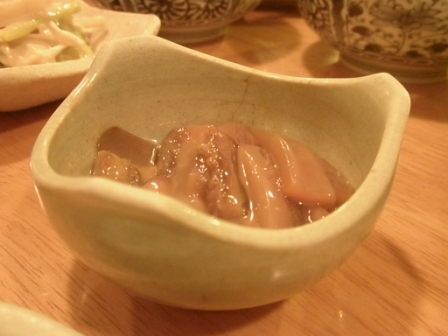 ほやの塩辛。さいしょ、乾杯はビールでしたがすぐに日本酒へ切り替えます。