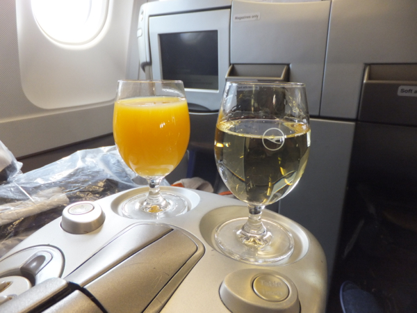 往路。名古屋ーフランクフルト。ウェルカムシャンパン