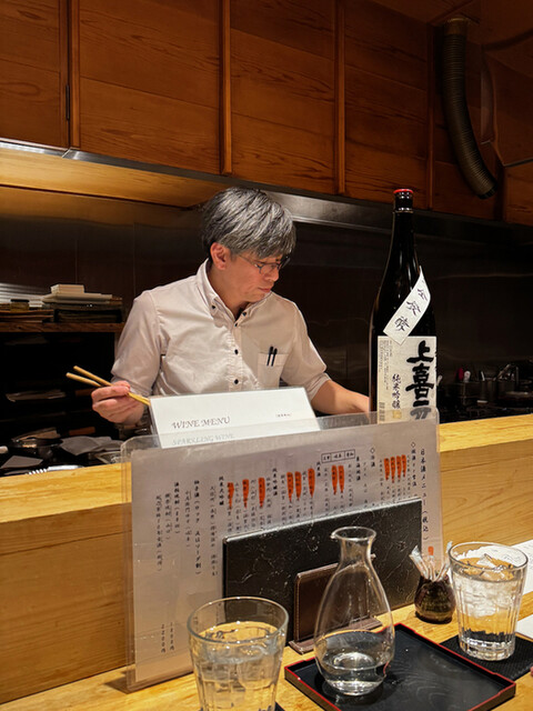今日は帰省した次女を連れて親子3人で出かけました。7席のカウンターは満席。個室も埋まっているようです。繁盛してますね。今回は一番安い6,000円のコースにしました。しかし全く問題ない。いずれの料理もとても美味しい。特に魚が美味しい。隣の客も美味い美味いを連発していました。センスあるわ大将。コスパの良さにびっくりです。お酒の種類も豊富。今日も大将オススメの冷酒を2つ頂きました。いつもながらの居心地の良さも嬉しいです。ここはもっと頻繁に通うべきだな、と再認識しました。