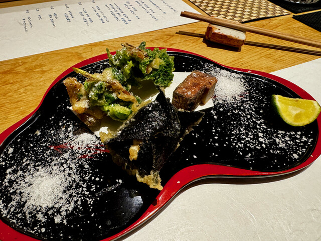 7)桜海老の衣の鯛の白子、シシトウ、春茄子