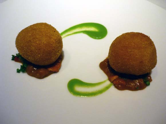 2014.06.29:3ヶ月ぶりにル・タン・ペルデュに行きましたが、なんと満席でした! いきなりシャンパーニュにクリュッグが出てきたのには驚きました 丁重にご遠慮申し上げましたが、このグラス、シャンパン用なのでしょうか? アミューズは右から、パルメザンのキューブ、クロワッサン、ファラフェル、燻製ナッツ、フォアグラとブリオッシュ これだけあると、おなかもきふくれます アントレは茄子のコンフィと雲丹、冷製で見た目も涼やかでした 合わせるワインは、アルザスのグラン・クリュ、さっぱりしてましたね 続いて冷たいブイヤベース スープも魚貝も冷たく、涼しげでした 私のメイン、穴子と牛ホホ肉のマトロット 牛ホホ肉というと単調になりがちですが、穴子の濃い味が複雑さを出してました 同行者のうずらのクレピネット、オマールのシヴェ うずらといえば、丸ごと出てくるという思い込みは裏切られました かなり独創的な料理がふえましたね 合わせるワインは、なんとテンプラニーリョ 自由奔放な組み合わせです デセールは多彩 ポップコーンです 右上はマスカルポーネムース これは何でしたっけ? 酔ってたので、名前も味も記憶がない・・・