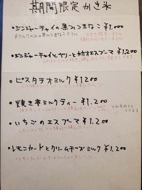 やっとチュアンの季節がやってきました 涼しくなって訪れると、客は私だけでした メニューを見ると見慣れた品々、他の方の記事を見るともう少し早いとメニューが違ったようです そして、ほどなく芋栗南京の季節 今年も芋は熟成させるそうで、提供が遅れるそうです 今回選んだのは「いちじくミルク」 ポピュラーですが、3か月ぶりとあっては頼まざるを得ません おなじみの真っ赤なソース、どうするとこんなに赤くなるのか今回も聞き逃しました いちじくは完熟でイヤというほど入ってます 「てんこ盛りだね、原価率高くない?」と聞くと「高くても、おいしい方がいいでしょう」とシンプルな回答 これで1300円! 名古屋あたりでは、これだけいちじくが入ってると1500円以下では食べれないでしょう 安くてうまい、今季も来年の夏まで通い続けると思います