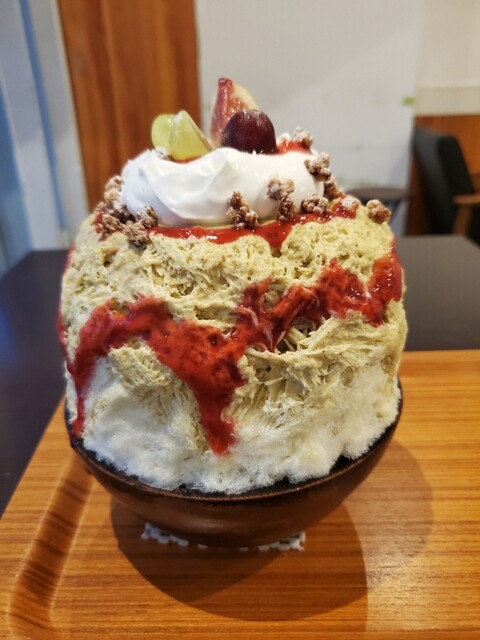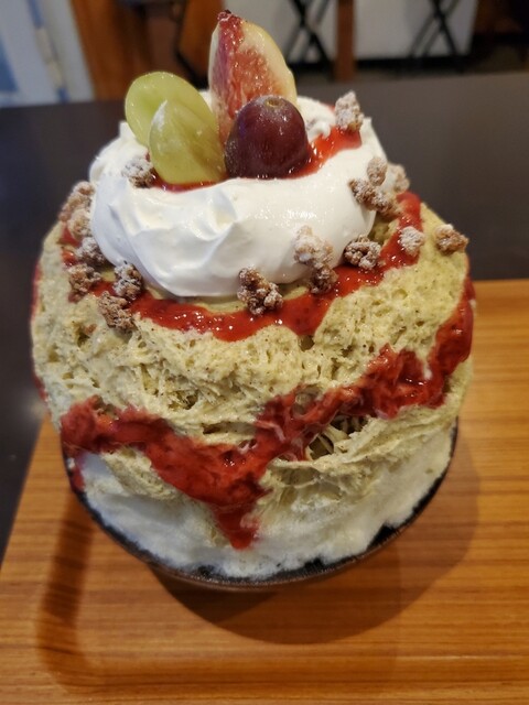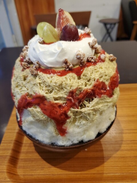 恒例の?チュアン詣で 新作が出ません 季節メニューを少しモディファイしてもらったりしてますが、特に思いつかないようです やむを得ず、私の方からピスタチオミルクに小ぶりのナッツを加えてもらうよう提案し、了解を得ました できあがりは、ご主人が言う通り「あまり変わりませんね~」 確かにパッと見ただけではわかりません 味もさほど変わりません まあ、元々おいしいからいいんですけどね この数日後にインスタを見るとカボチャの品が載っていて、タッチの差だったようです 来週はカボチャですね♪