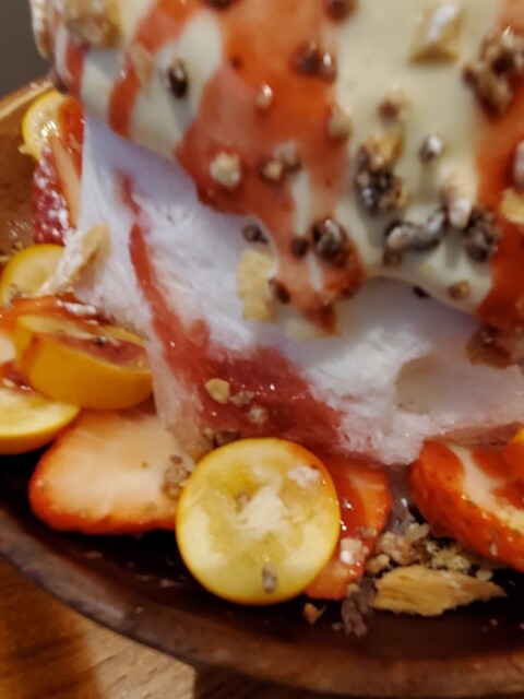 こちらでは、もともと客の好みに合わせてソースを変えたりしてくれてたんですが、私の場合、イチゴや金柑が手に入るようになって、大幅に変更をお願いするようになりました この日もイチゴを持参してたのでどうしようか相談しました 正規のメニューにいちごのレアチーズがあったので、そこにいちごを増量しようかとなったのですが、少しクドくなるのではと、いちごティラミスに変更することになりました 写真だけではわからないでしょうが、かなりの量のいちごが使われていて、夕食がいらないくらいのボリュームになりました
