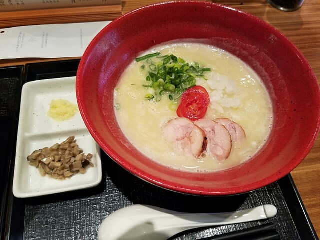 ミシュランに掲載されるラーメン店が話題になっているJR巣鴨駅南口から徒歩2分にある「麺やいま村」メニューはいたってシンプルで鶏白湯をベースに煮干しを効かせた醤油味850円と鶏白湯の風味を活かすために鶏煮干しをおさえた塩味800円の二種類のみ。先味としてラーメンを注文すると直ぐに目の前で焼かれる炭焼き鶏チャーシューが食欲をそそります。塩味一口目のスープはまるで繊細な洋食のスープを飲んでいる様な味わい。そこにやや太めの麺と一つずつ手作りした柔らかい鶏チャーシュー、隠し味に添えられたプチトマトが絡まるとラーメンの域を越えたらぁめんに大変身。そして最後までスープを飲み干すと美味しいラーメンを食べた満足感に包まれます。一杯のラーメンで洋食のコースを頂いた様ならぁめんに出会いました。お店のお薦めは醤油味ですが私は塩味をお薦めします
