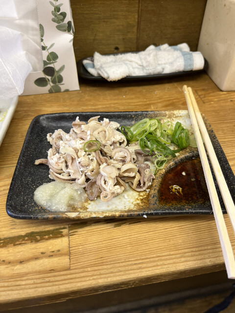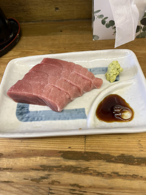 インドマグロ、これは明らかに中トロ400円、牛叩き250円、ガツ刺し150円。