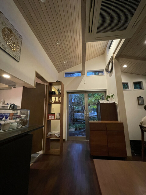 なんとかお店にたどり着くと、鎌倉の中心街とは全く異なり、周りは木々に囲まれてとても静か。天園遊歩道入口も直ぐ近くにあるらしい。お店に入るとホールにはテーブル席が2つ。壁には韓国の作家さんの作品が掛かっており、とってもセンスのあるお店です。