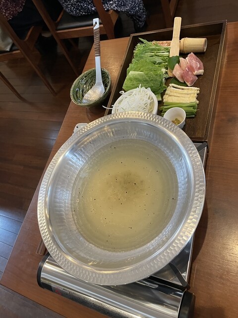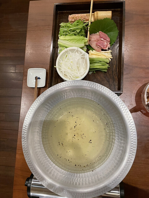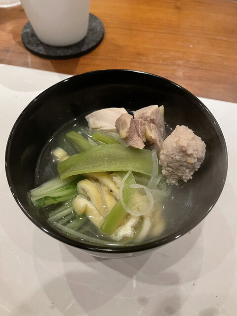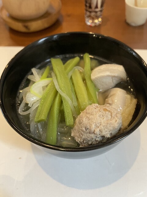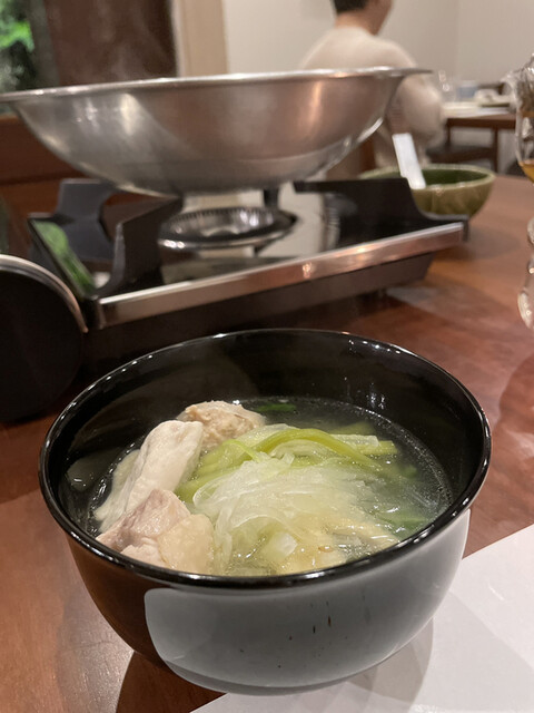 軍鶏の鍋は鶏のスープにシコシコの軍鶏肉と鶏団子、そしてコリコリの山クラゲがアクセントになって美味いです。