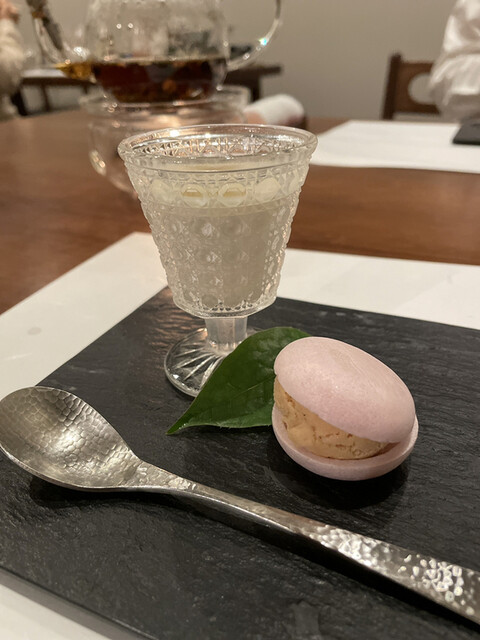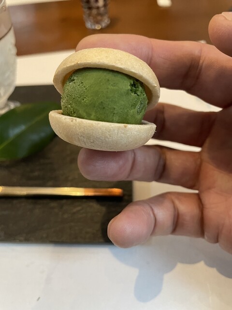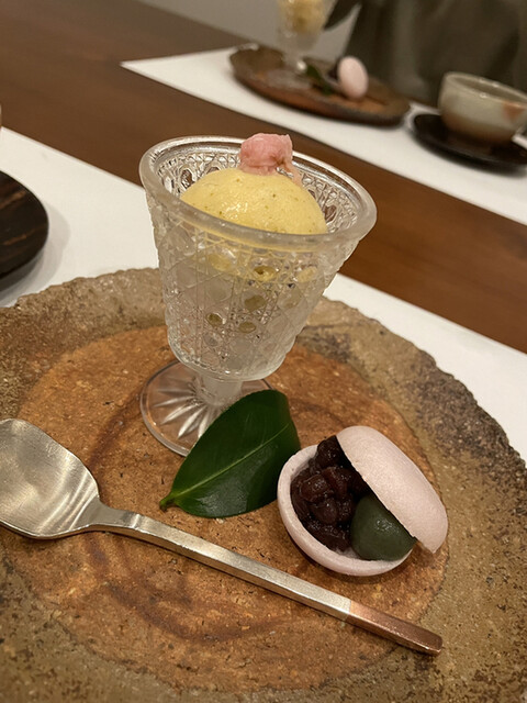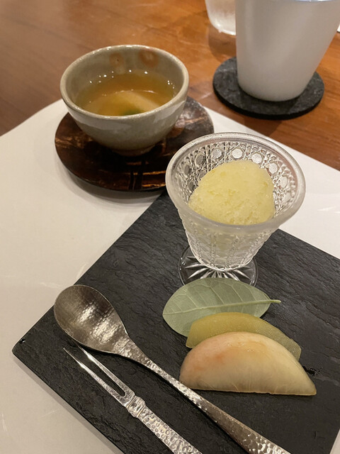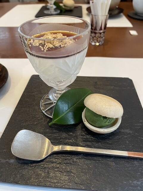 デザートはバジルのソルベと生菓子。〆にとっても合いますね。