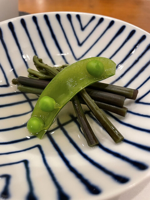 蕨とえんどう豆、出汁が効いてます