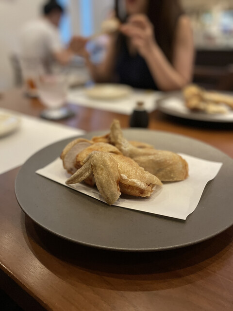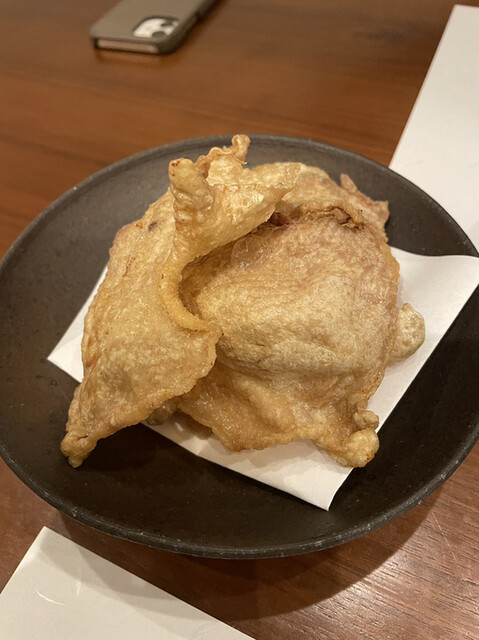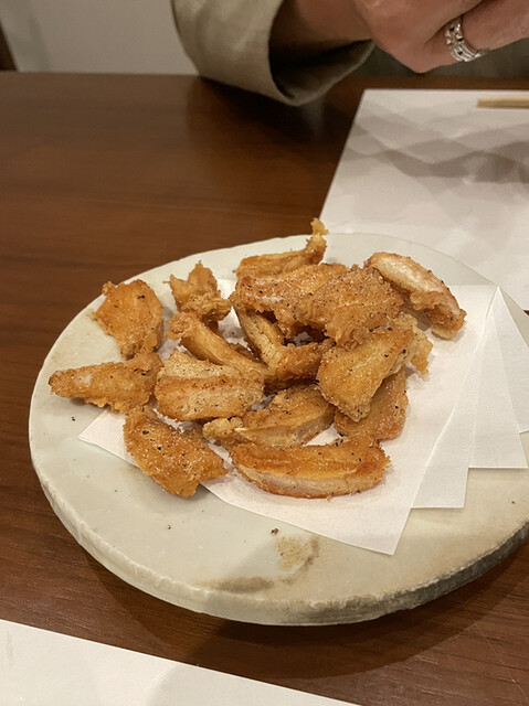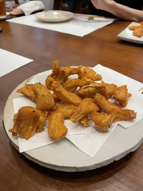 追加でお願いした鳥軟骨の唐揚げはビールのおつまみに最高!鶏皮はパリッと揚がり永遠に食べていられますね。