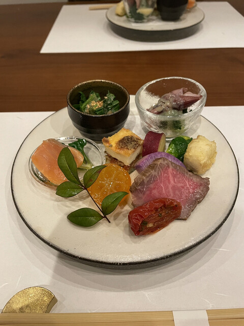 次は前菜の盛り合わせ。一品一品手間をかけて調理されていて味付けも素材の良さを生かすために薄味にしでも出汁は効かせている。