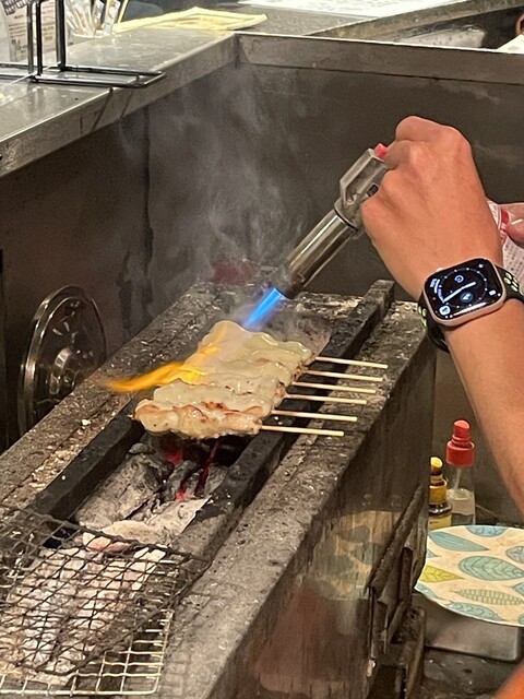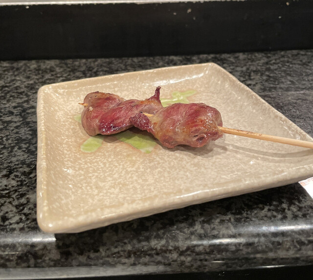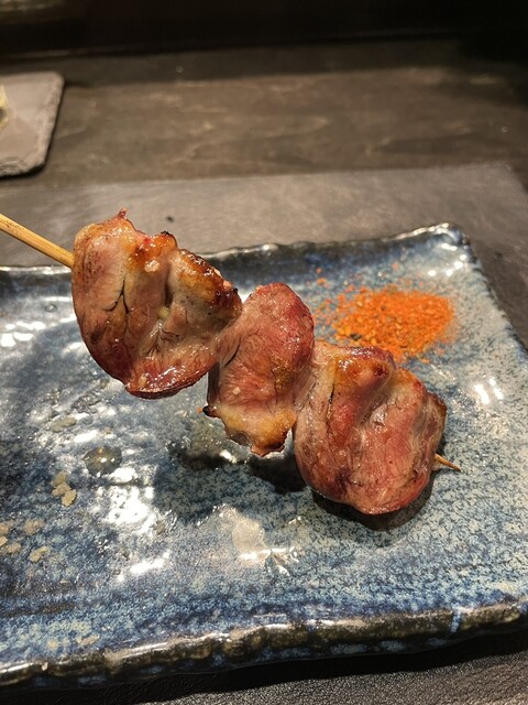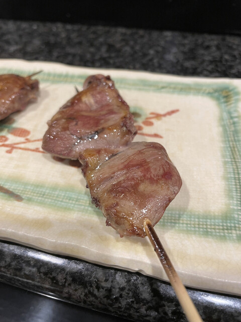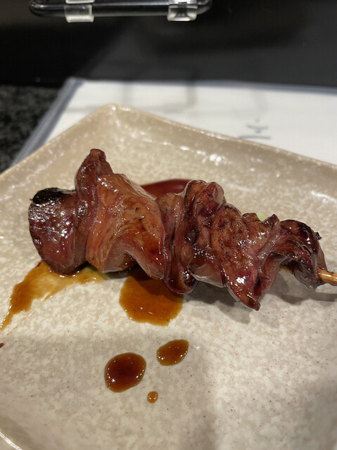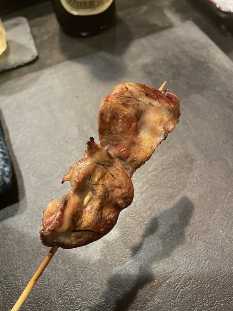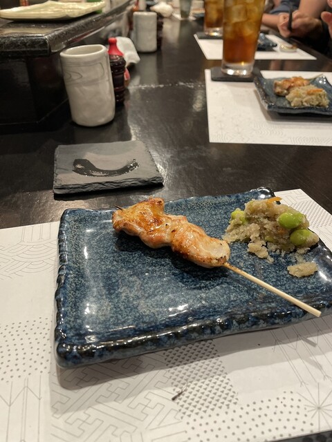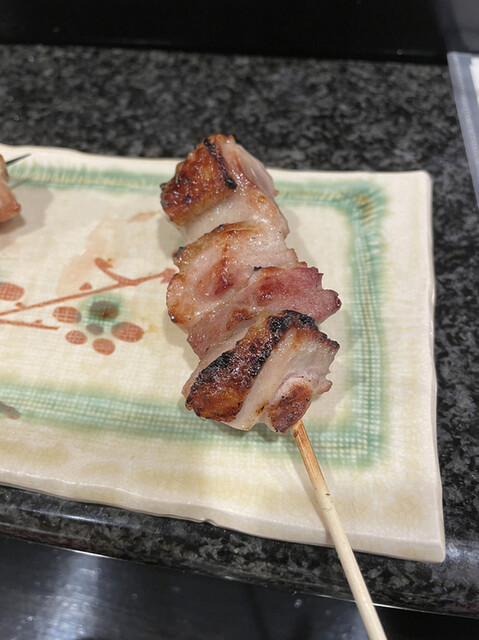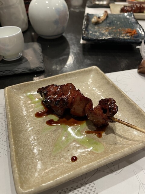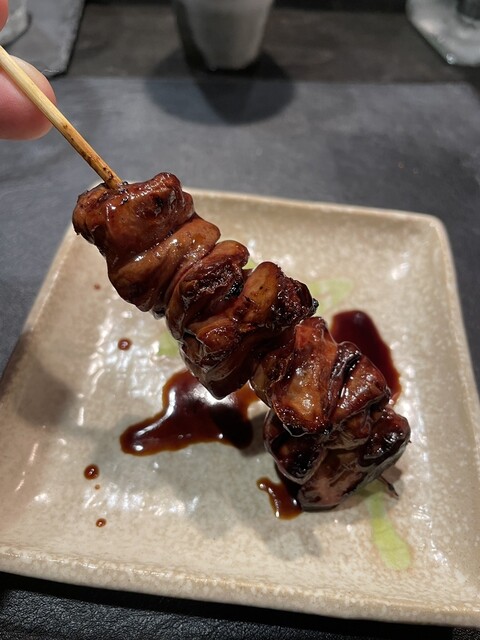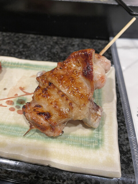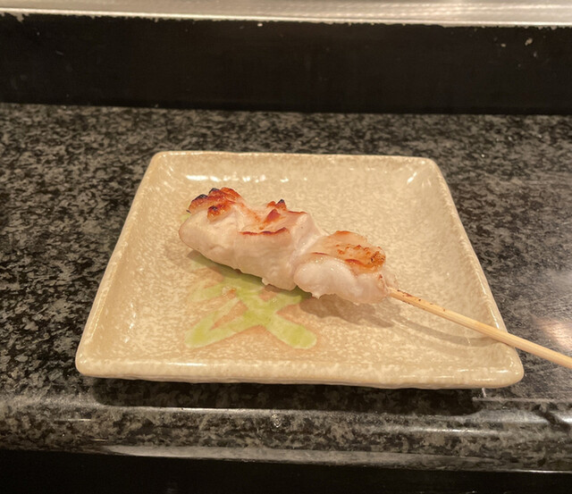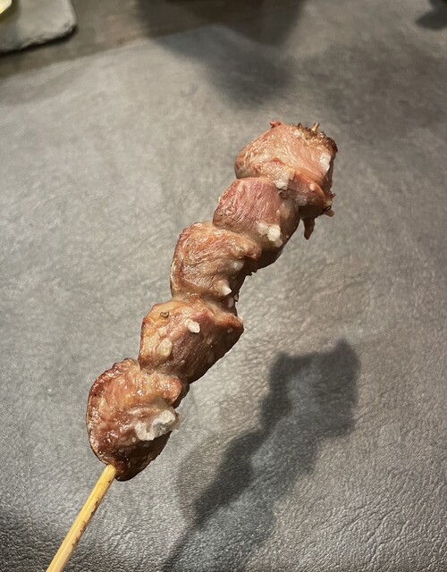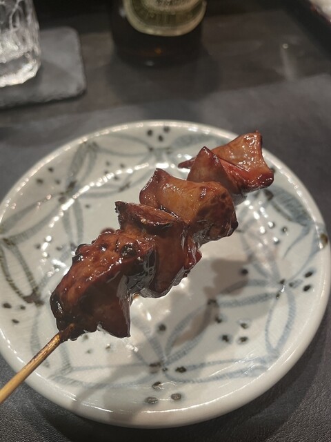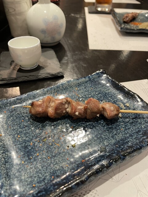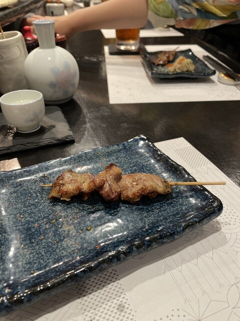 つきだしの後は焼き鳥が始まります。炭火で焼いた焼き鳥は塩味でとってもジューシー。特に、オーナーさんが以前、養鶏場のお手伝いをされていた「かたせ赤鶏」は食感も良くて胸肉でもパサパサしてなくてジューシーで美味い! 比内地鶏のような感じかな。(食感はもう少し柔らかいが)