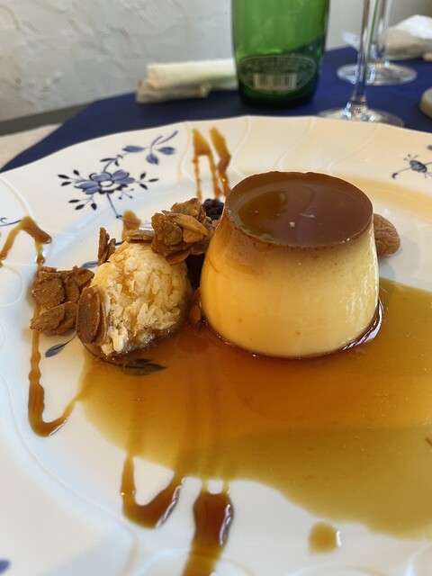 レアチーズケーキは想像していたものを超えていて、湘南の海をモチーフにしたようにレアチーズケーキの上にブルーのゼリーがひかれ、波を表現した焼きメレンゲが添えられています。プリンも手作りで超滑らか。