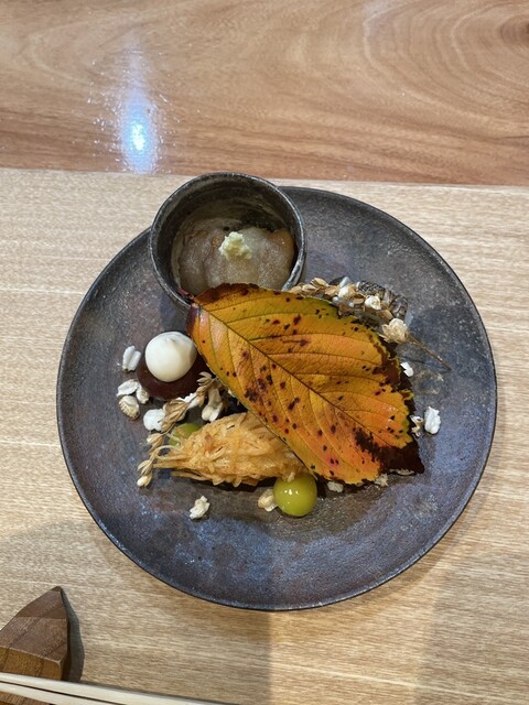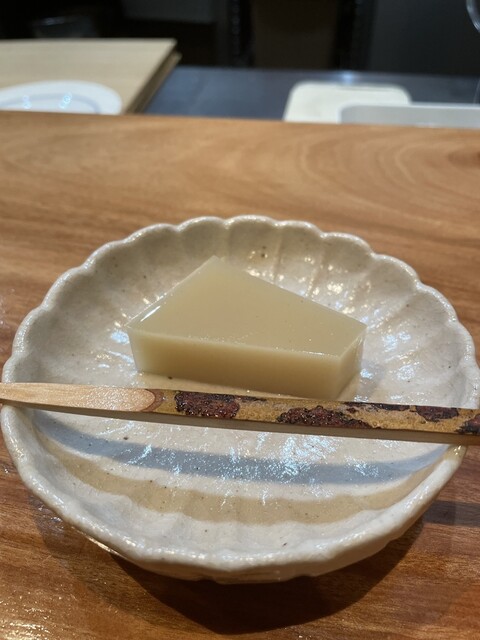 イチジクを葛で固めて上新粉をつけて焼いたデザート。