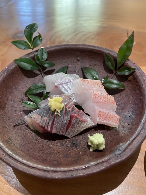 赤背ムロ、ハマダイ湯引き、サワラお造り