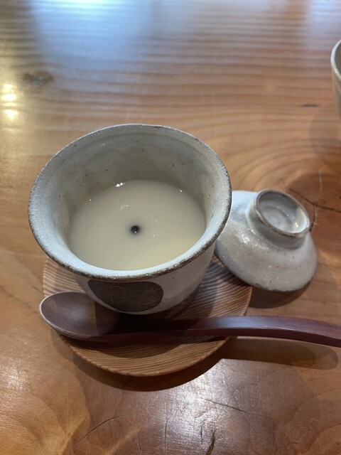 茶碗蒸し、焼きトウモロコシのポタージュがけ