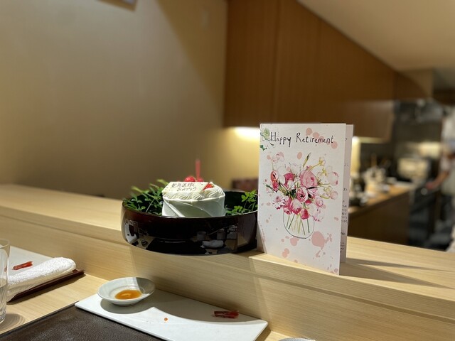 お料理と寿司は言うまでもなく絶品。高津の頃にもよくいただいていた鮑に海苔を乗せた品は懐かしい一品でした。このお店で祝ってくれて本当にありがとう。そして美味しいお寿司を店主さんありがとう。