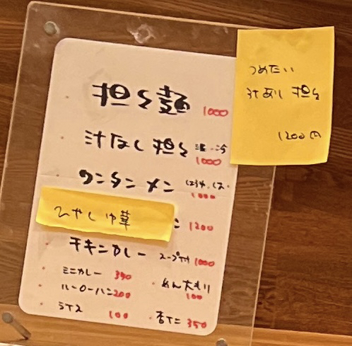 夜のおつまみメニューも気になるがこの日二軒目なので〆の担々麺を。