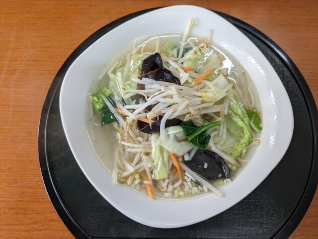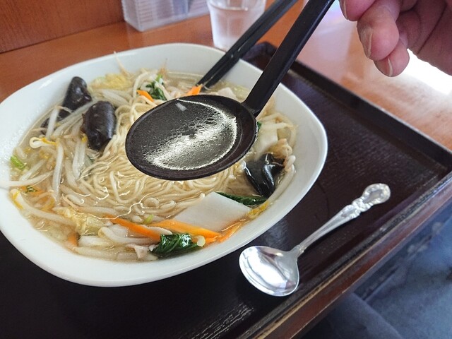 塩ラーメンは旨味のあるアッサリスープ。麺は中華料理店の大半のそれとは異なる固め、コシのある麺。