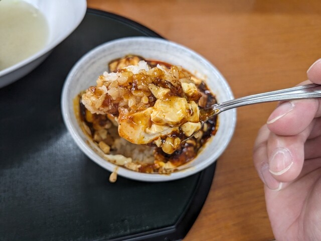 一方、黒みの強い麻婆は熱々なこともあるのか、山椒の刺激が少し強く感じました。